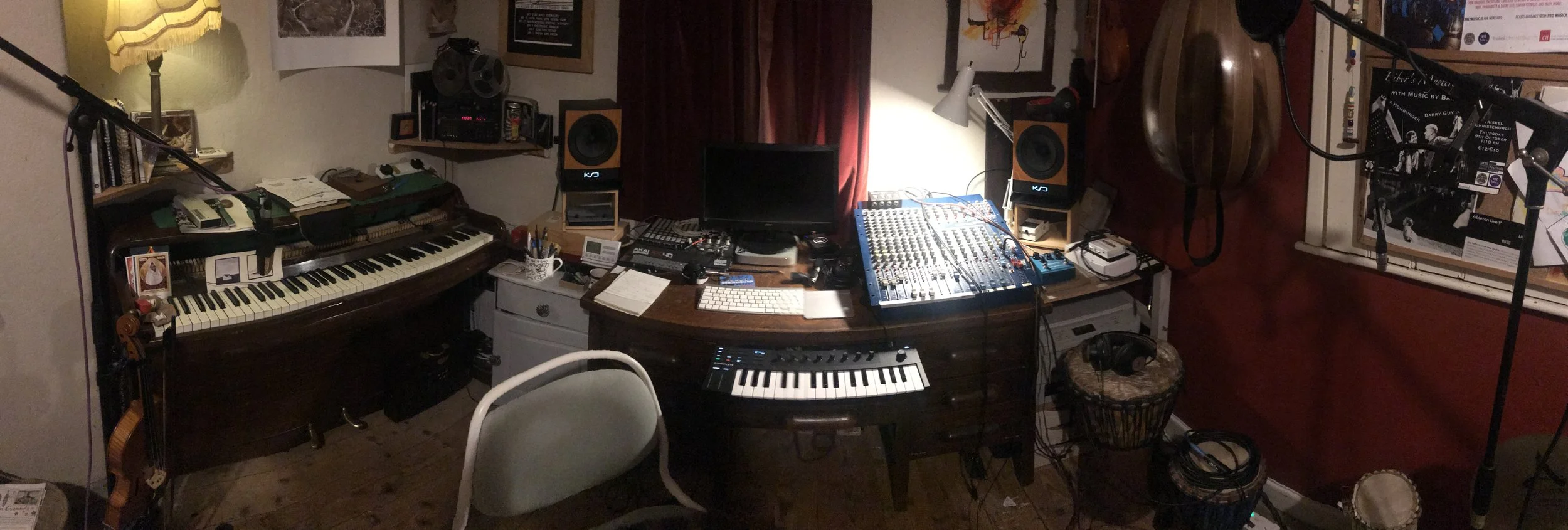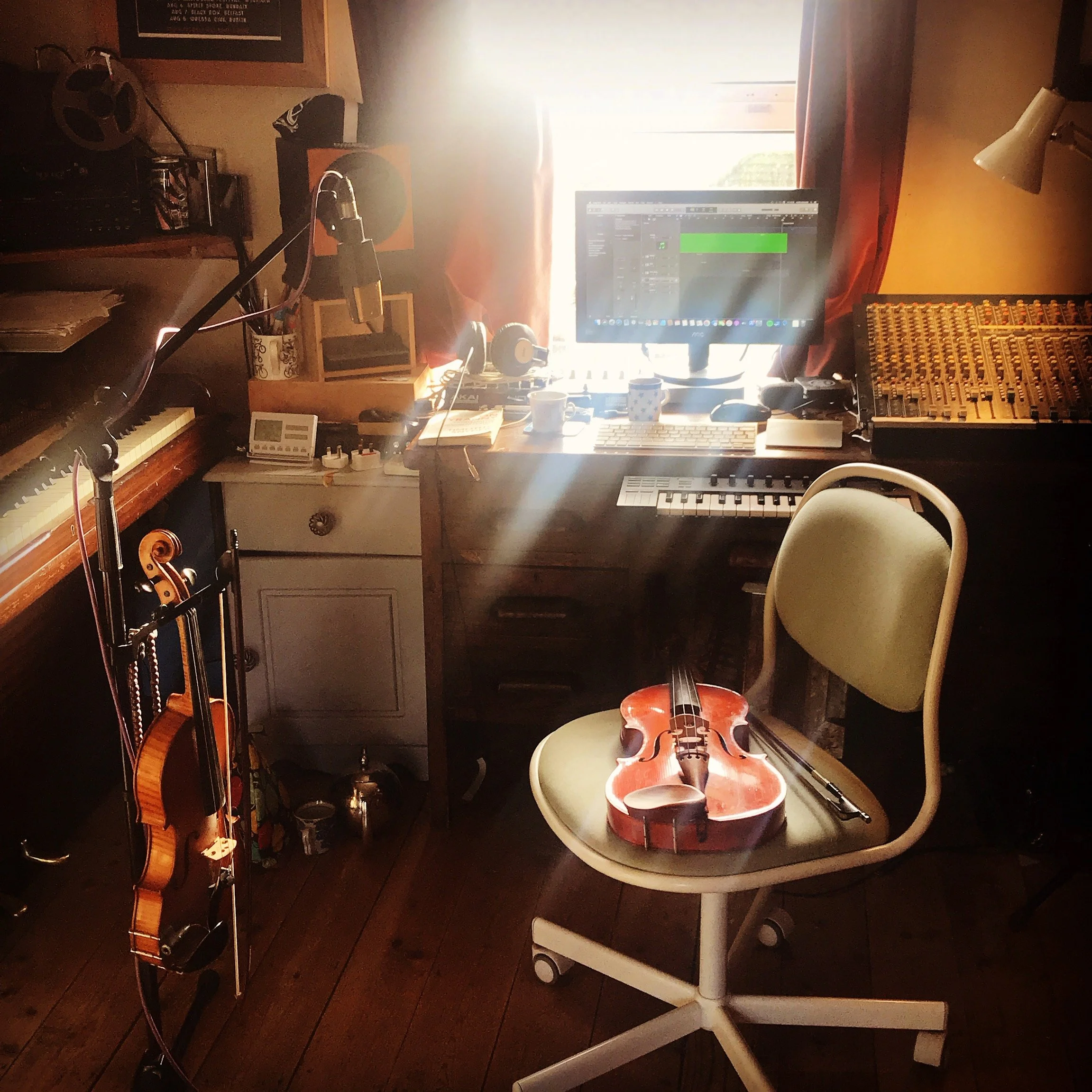 I work as a string arranger and record producer from my warm, wood floored music studio in Clonakilty, West Cork. I have a recording and mixing rig which uses the best of both digital and analogue technologies, including a British -made Allen & Heath analogue desk, a 1/4" Fostex Tape machine, MOTU digital converters, Logic Pro and Ableton Live and a collection of string instruments, felted piano, clarinets, drums etc. Do get in touch if you would like to work with me on a recording, or some strings, or if you would like anything mixed to tape through the analogue desk....warm warm warm (next the the antique wood stove)